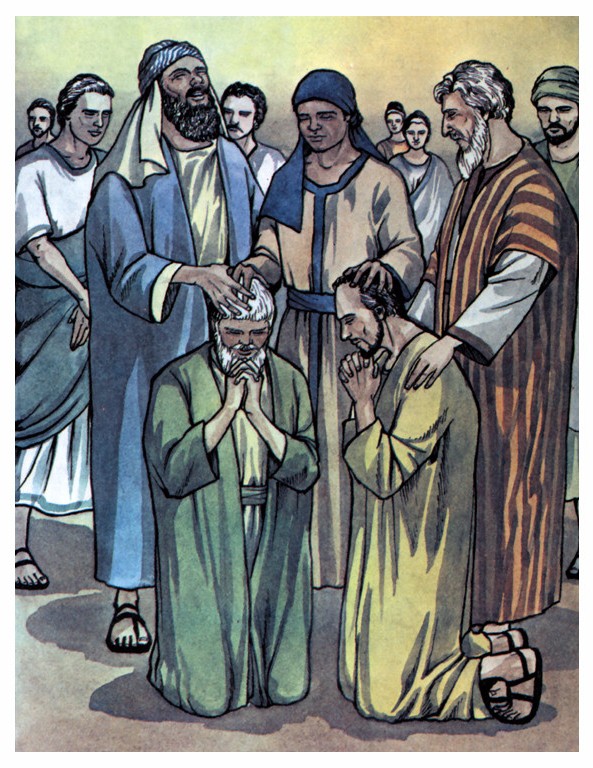 V tých dňoch, keď rástol počet učeníkov, Helenisti začali šomrať na Hebrejov, že pri každodennom obsluhovaní zanedbávajú ich vdovy. Dvanásti teda zvolali zhromaždenie učeníkov a povedali: "Nepatrí sa, aby sme my opúšťali Božie slovo a obsluhovali pri stoloch. Preto si, bratia, vyhliadnite spomedzi seba sedem osvedčených mužov, plných Ducha a...